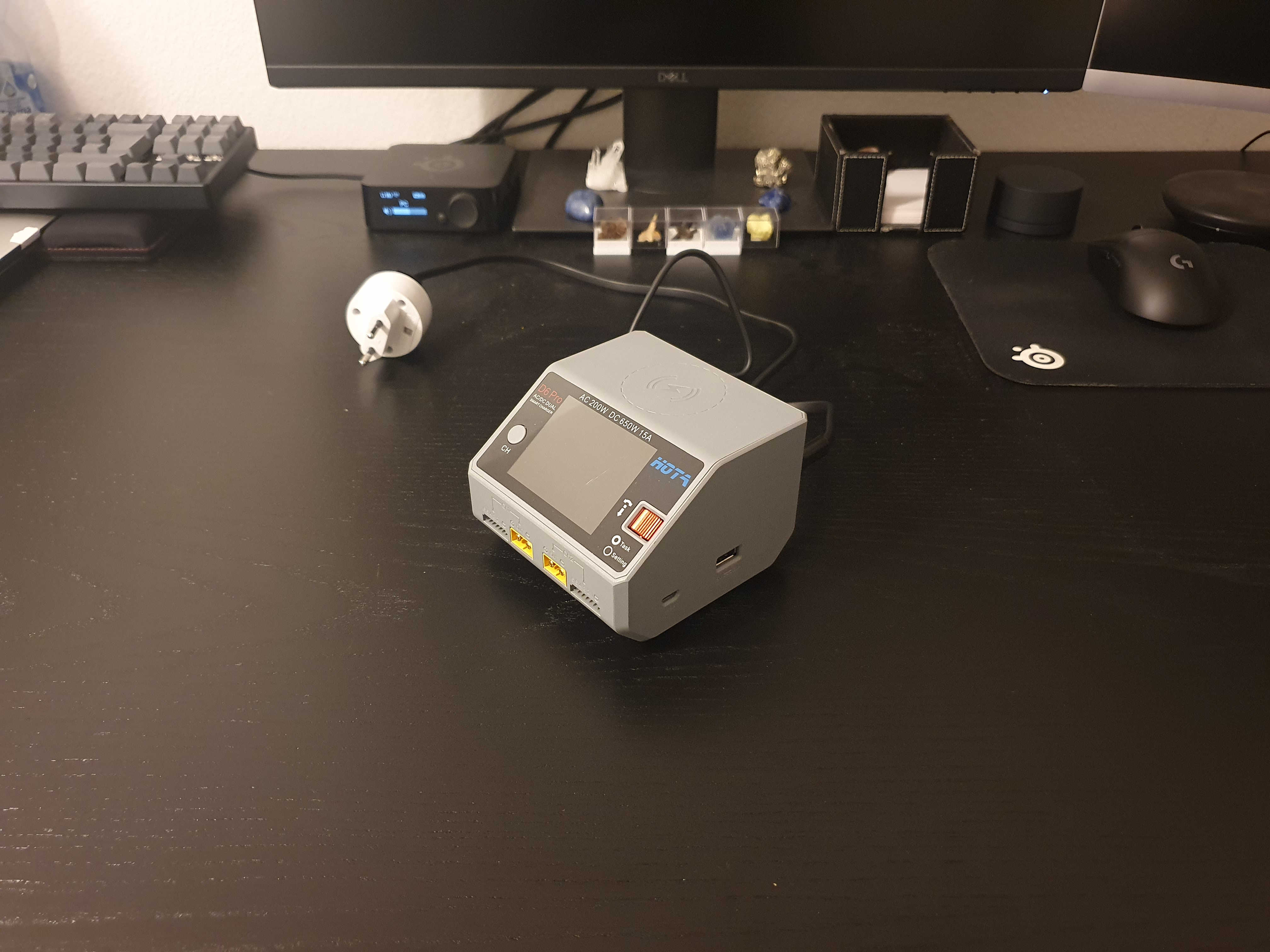 Die LiPo-Akkus müssen auch aufgeladen werden. Dazu wird ein spezielles Ladegerät verwendet, mit der man den Stromzufur genau anpassen kann. Da man mit LiPo-Akkus vorsichtig umgehen soll und auf keinen Fall falsch aufladen darf, habe ich mir ein hochwertiges Ladegerät geholt.