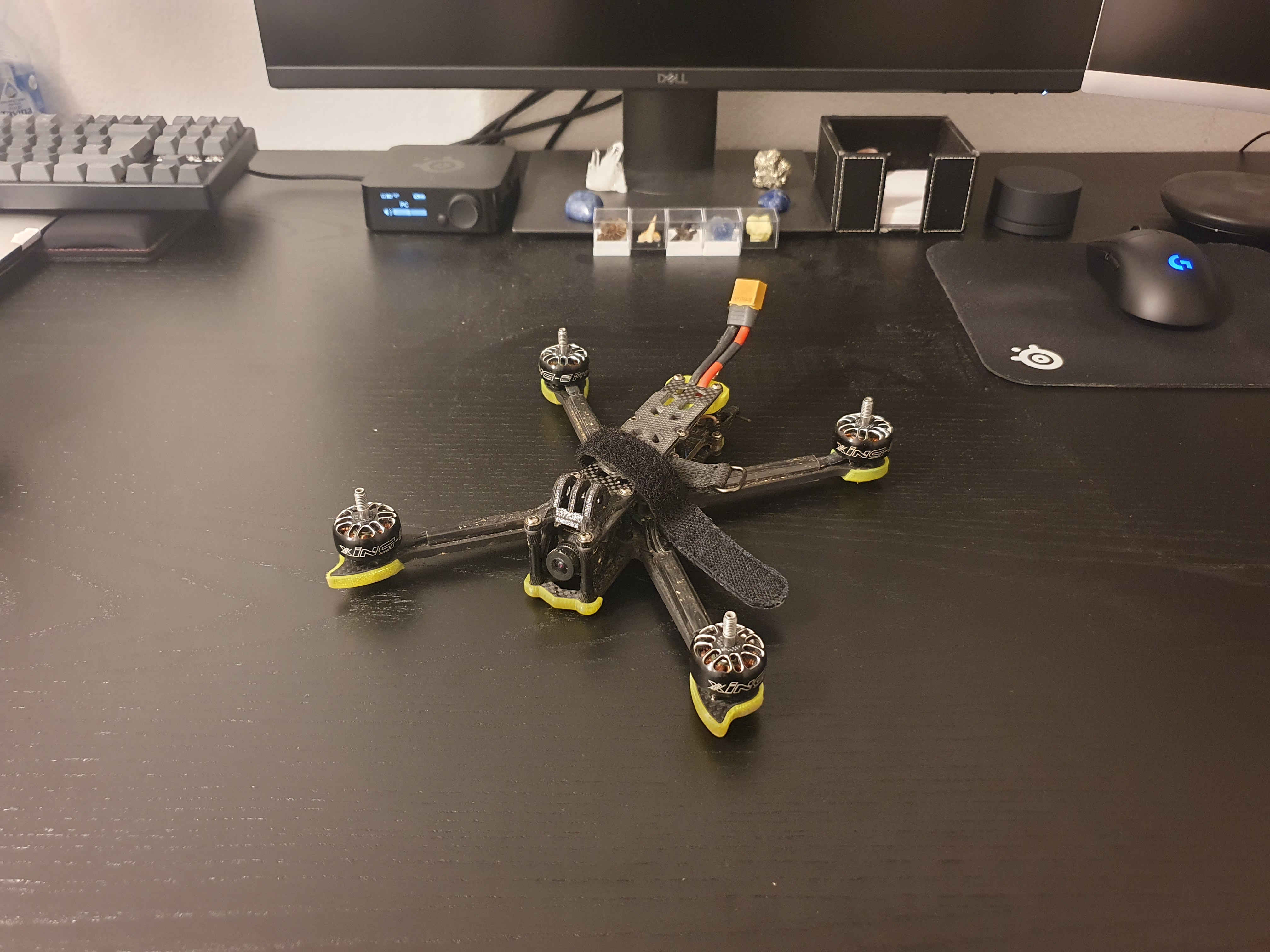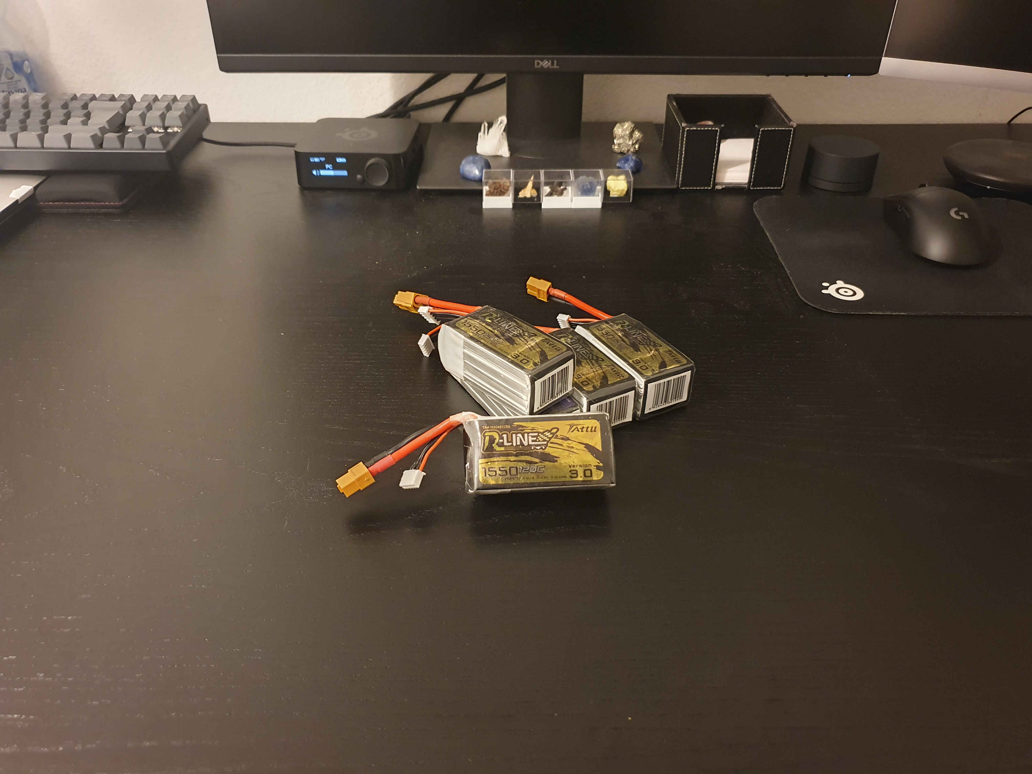In FPV-Drohnen und auch bei anderen RC-Geräten werden sehr oft Lithium-Polymer-Akkus verwendet. LiPos können viel mehr Energie auf einmal ausgeben als gewöhnliche Lithium-Ionen-Akkus, weshalb sie ideal für stromfressende Motoren in einer Drohne sind. Ich habe all meine Akkus von Tattu gekauft.